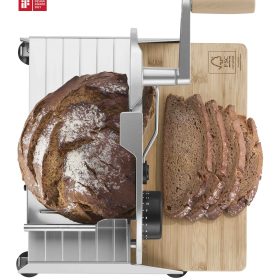 かわいらしい見た目のハンドル式ブレッドスライサーです。